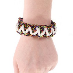 The Solomon V Bar Paracord Bracelet is similar to the cobra belly weave, but with two colors forming a Z-pattern. In this tutorial, we use Hyper for the outside and White for the center. We also used a 5/8" Black Buckle.